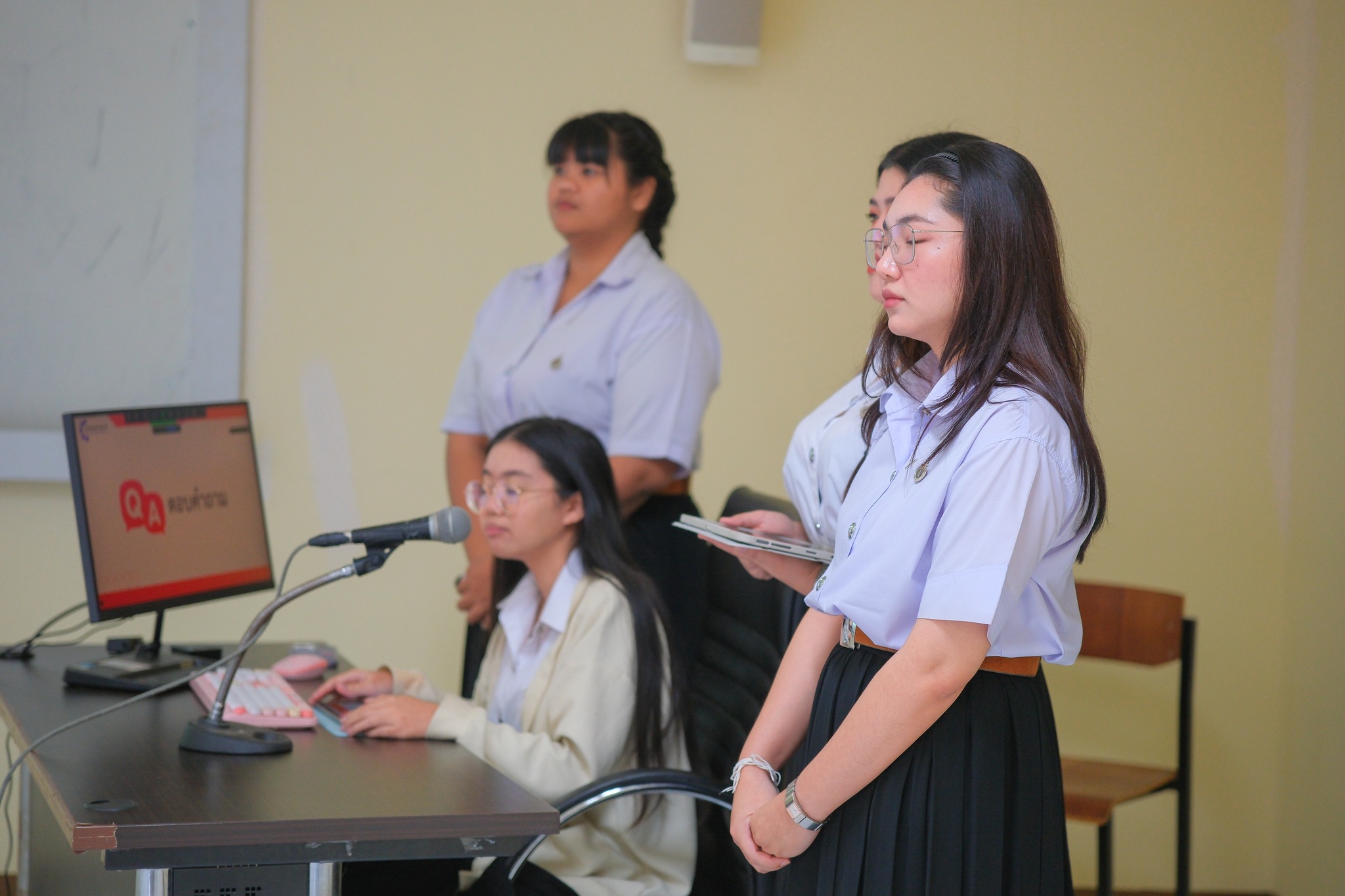 " นำเสนอผลงานด้วยวาจาต่อหน้าคณะกรรมการ พร้อมสื่อประกอบการนำเสนอ "