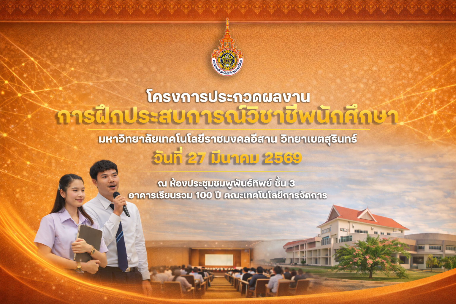 วันที่ 27 มีนาคม 2569 ณ ห้องประชุมชมพูพันธ์ทิพย์ ชั้น 3 อาคารเรียนรวม 100 ปี คณะเทคโนโลยีการจัดการ มหาวิทยาลัยเทคโนโลยีราชมงคลอีสาน วิทยาเขตสุรินทร์.