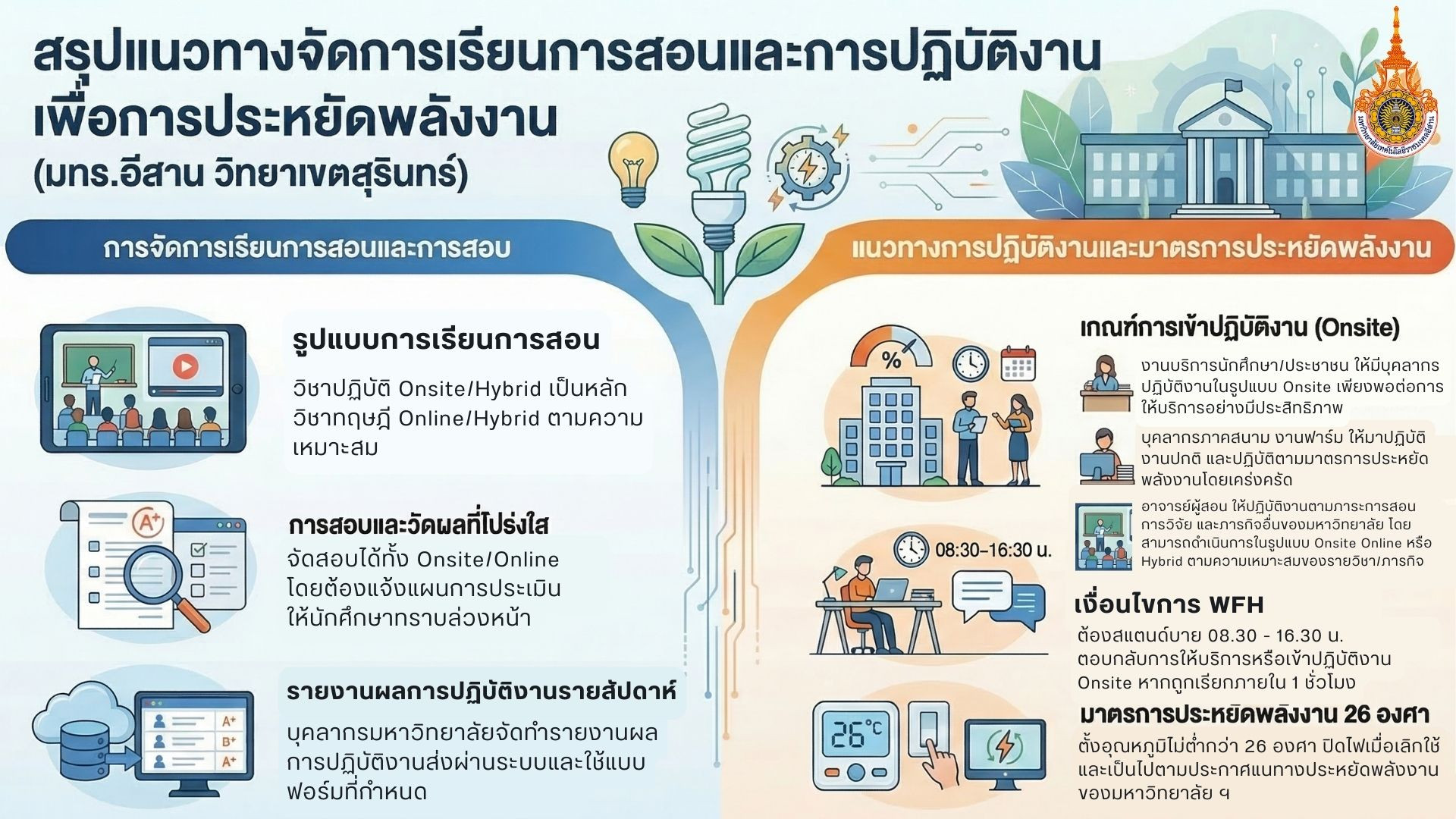 ประกาศแนวทางการจัดการเรียนการสอนและการปฏิบัติงานเพื่อการประหยัดพลังงาน